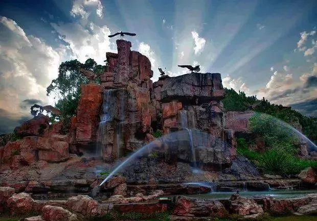 九只造型逼真的大鵬鳥展翅立于景區(qū)入口的假山之上,個個英姿勃發(fā)~似是隨時待命庇護九鵬溪?,F(xiàn)如今,除了感念意義外,也代表了迎之意~