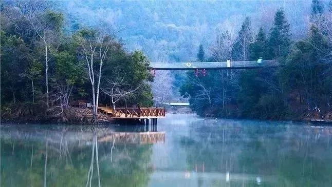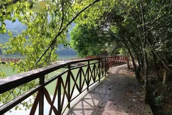 九鵬溪時常云霧繚繞,遠處的山景若影若現(xiàn),沿途分布著很多棧道,從水上延伸到山里。漫步其間,呼吸清新的空氣,十分神清氣爽。