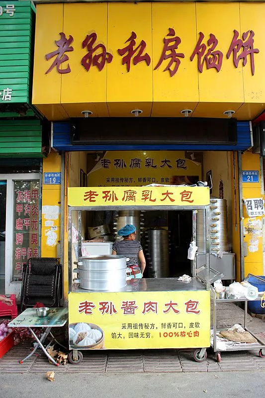 從安陽天寧寺出來往西走,到彰德大街,左轉去公交站牌乘坐公交,路遇一家賣包子的小店鋪,想到晚上的火車,需要帶點食物,于是就買了幾個包子。這是第一次吃腐乳肉包子,把包子掰開,還真是嚇了一跳,怎么全是方塊的肥肉,我雖胖,卻不愛吃肥肉。耐不住香味,嘗了一口,包子皮松軟,里面的腐乳肉入口即化卻是一點不膩。于是一口氣吃了兩個大包子。