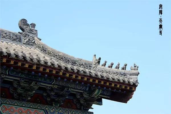 五樽檐獸,中國古建筑的檐痹是有講究的,從這五樽檐獸可以看出建造時此寺等級。這是皇家寺院的規(guī)格。