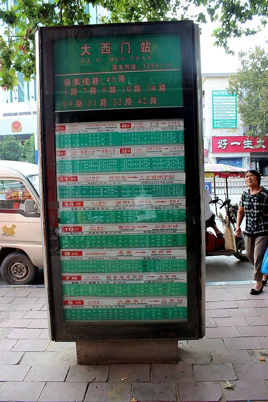 公交站牌,從火車站去天寧寺要在大西門下車。