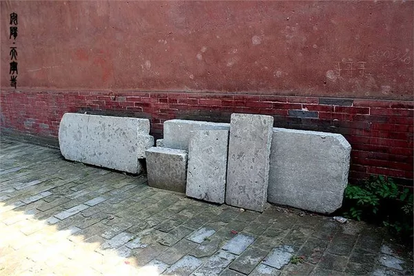 一些已經看不清字跡的石碑,被堆放在墻邊上。