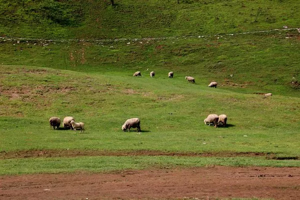 于是我們就往回走,走到酒店繼續(xù)往回走,這條路路況還不錯(cuò),一路的風(fēng)景依然好,遇見了一群羊。