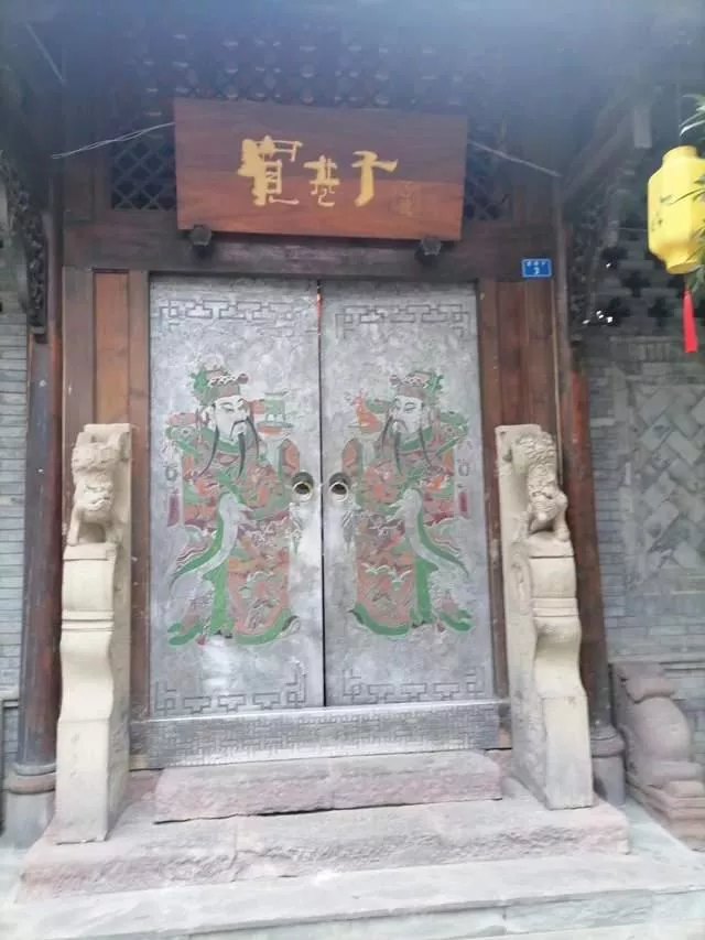 就是這樣一個古老的宅院,兩扇門上貼著門神,似乎是唐代的秦瓊、敬德。他倆是唐代李世民跟前的兩員虎將,也許人們希望它能護佑這一院的平安。街上走過來的游客大都是第一次來寬窄巷子的,他們在那個古老的門口停下來。因為三三兩兩的人都想在這兒拍個照片,也就是想炫彩自己曾來過寬窄巷子。一眼就能看出她們是外地的,因為本地人不會天天在這留影,再簡單不過的胡同了。我也讓過來一對情侶中的一個說聲幫我,讓她給我也拍個照片。寬窄巷子那個門口有株樹,似乎像是芭蕉樹,葉子肥大厚實,但在這兒更能顯出寬窄的人文。