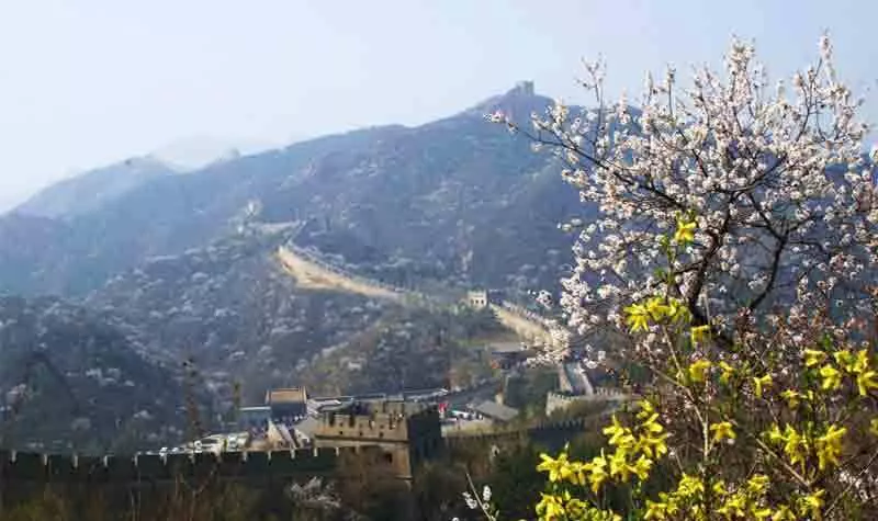 春天的八達嶺長城一片生機勃勃,滄桑與新生并存?!靶?a href='/jingdian/45764' target=_blank>花坡”每臨春季花團錦簇。