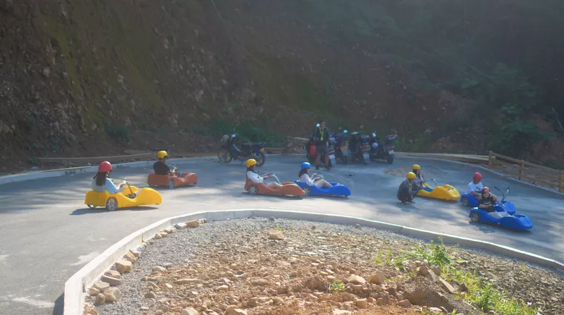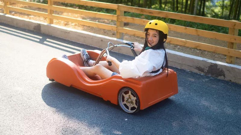 坐在滑板小車上,實(shí)現(xiàn)高速行駛,體驗(yàn)速度與激情和山峰的呼嘯~當(dāng)然啦,害怕的朋友們可以輕捏手剎降低速度哦!