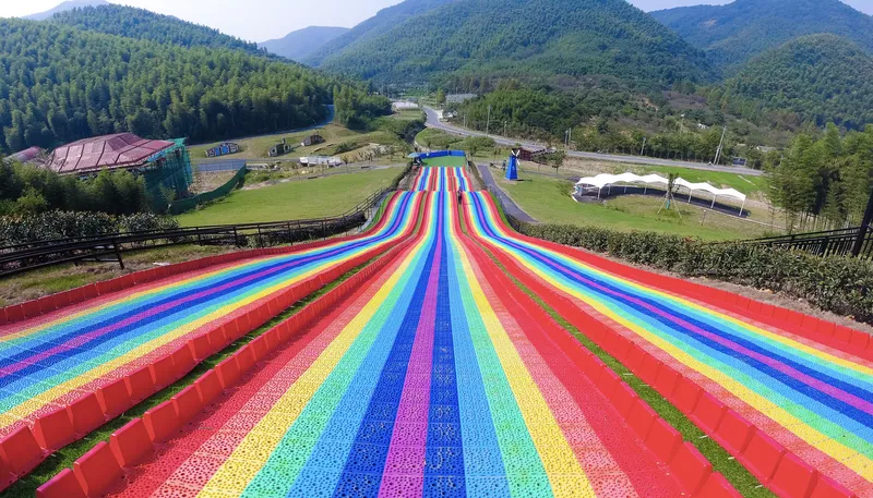 近年來(lái)很火的彩虹滑坡終于能體驗(yàn)一番啦,從彩虹山坡一路傾斜而下,盡情吶喊吧!