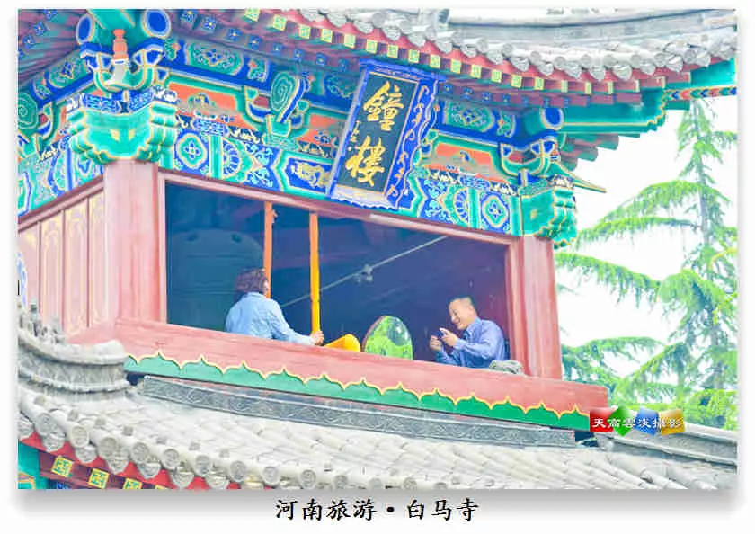 晨鐘暮鼓,時(shí)光流轉(zhuǎn),萬千僧人的腳步在此駐足停留,翻開的歷史,窺探一角,哪一塊石板沒有故事。法相金身的佛像,繚繞的香煙,純潔的荷花池和古香古色的殿宇,歷經(jīng)歲月洗禮的白馬,無不透著佛的聲音。大佛殿的東南角有一口明代鑄鐵鐘,“白馬鐘聲”乃洛陽八景之一,每當(dāng)月白風(fēng)清,晨曦初露之時(shí),殿內(nèi)撞鐘涌佛。正如老舍所言:中周原善土,白馬馱經(jīng)來。野鶴聞初磐,明霞照古臺(tái)。