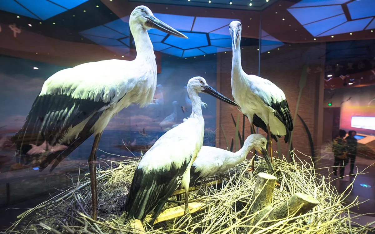 這里以“保護(hù)珍稀鳥類,共建生態(tài)文明”為主題理念,分為“大河息壤——共生廳”、“候鳥驛站——共鳴廳”、“鳥國探秘——共賞廳”、“鳥類天堂——共享廳”四大主題展廳,展示陳列了1400余件標(biāo)本物。