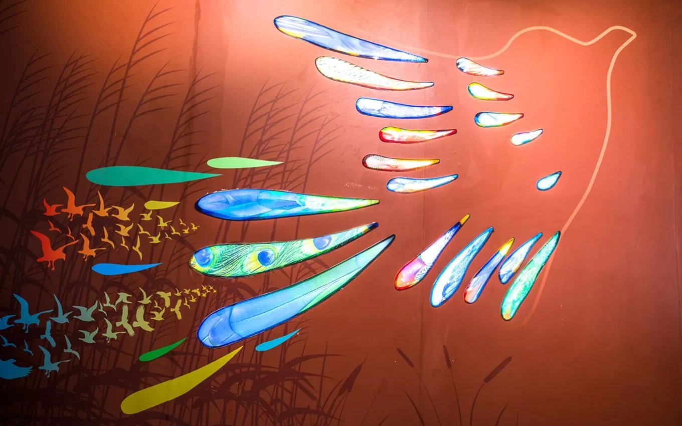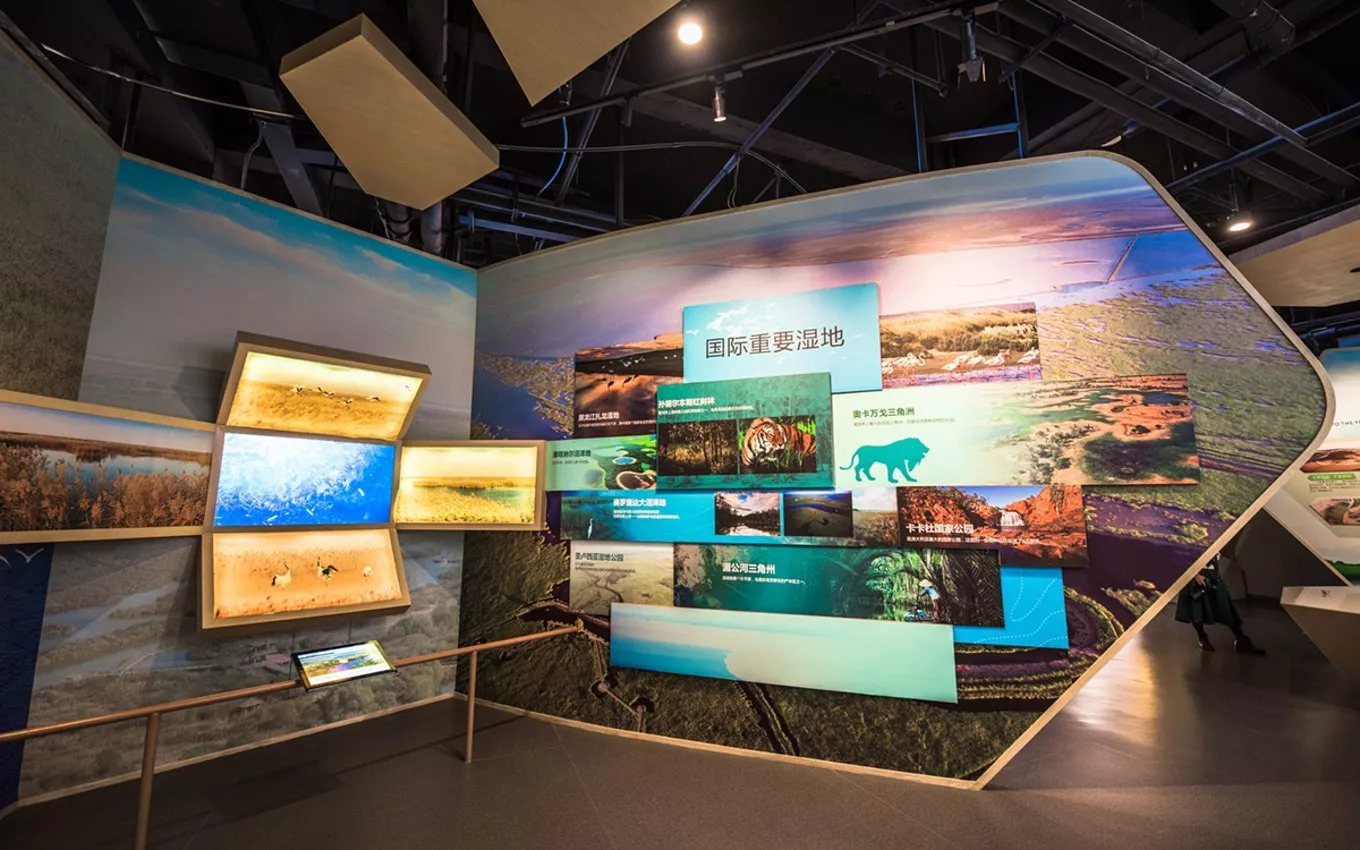 目前全球鳥類共有 9756 種,這里擁有多種珍稀的鳥類,其中包括國家一級保護(hù)鳥類 12 種,國家二級保護(hù)鳥類 51 種。游客可以通過先進(jìn)的 VR 技術(shù),在這里進(jìn)行虛擬的濕地美景漫游。