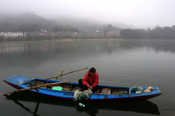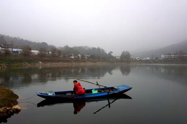離開了紀念園我們就來到了花亭湖畔,此時花亭湖上晨霧籠罩,湖的兩岸以及湖心小島都被晨霧籠罩著,那如夢似幻若隱如現(xiàn)的情景真是讓人恍如夢里一般。再看岸邊的徽式建筑倒映在晨霧的水中,猶如瓊臺樓閣,散發(fā)著仙境的氣息。尤為引人注目的是一位紅衣的漁女從遠處的湖面,從迷霧深處輕舟而來,如仙女下凡般讓你產(chǎn)生無際的遐想……如此這般我們真真的迷醉在了這花亭湖的晨霧中。