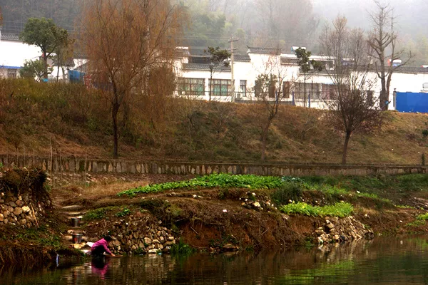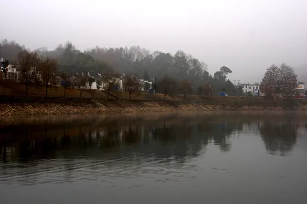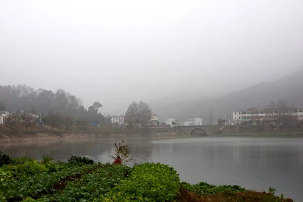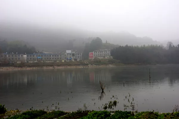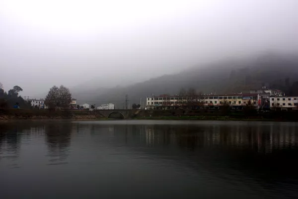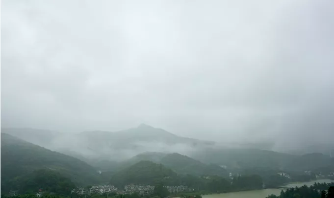下圖為龍山宮外的河道基本被水霧籠罩,夏天的早晚形成霧鎖龍山宮的美景。