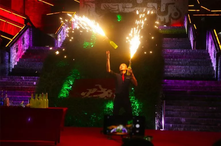 用500年龍窯柴燒杯喝現(xiàn)場花式調(diào)酒,