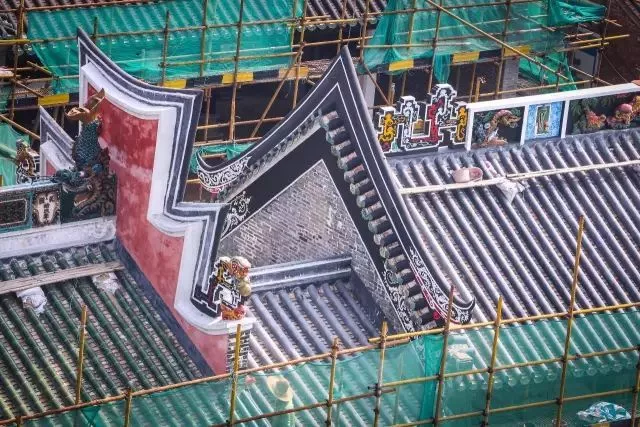 豐寧寺-蓮峰書院的修繕由佛山著名古建筑修繕團隊執(zhí)行,在原有基礎(chǔ)上,屋頂主要采用嶺南灰雕裝飾,新增了許多瓦脊公仔。