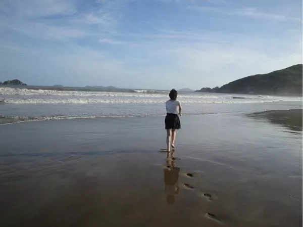 脫掉鞋子,穿上美美的長裙,在沙灘上玩起來自由自在。來海邊不就是這么放松的么?
