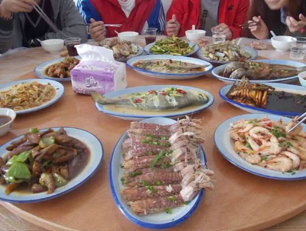 拿著在海里捕撈上的魚回了賓館,旅館幫我們加工成了海鮮大餐。當這些海鮮上了桌時,頓有一種農耕收獲的感覺。特別滿足。