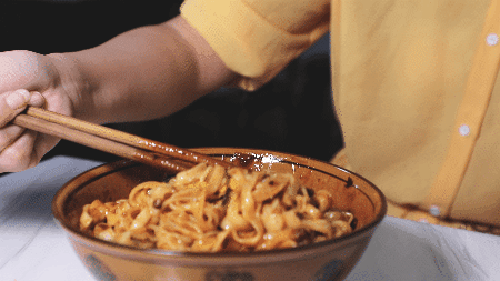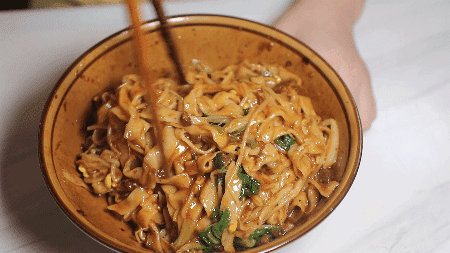 素面裹上炸醬拌勻,醬香味滲透進(jìn)每個(gè)縫隙里,爽口彈牙~
