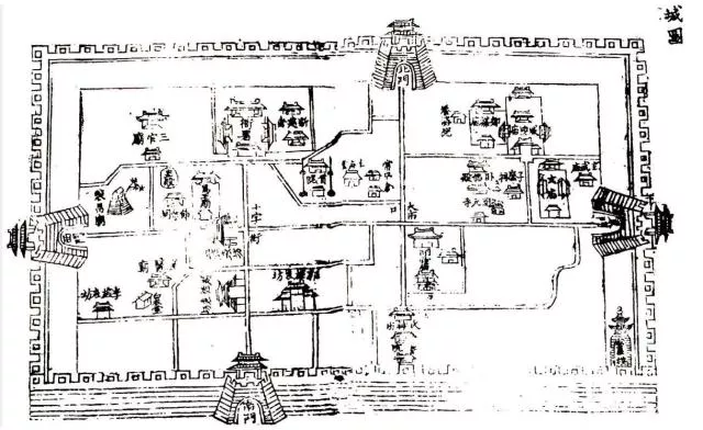 據(jù)《嘉靖鄭州志》記載,唐武德年間,管城“圍九里三十余步,門(mén)有四:東曰寅賓,南曰阜民,西曰西成,北曰拱辰”。其中,東大街連通寅賓門(mén),南大街連通阜民門(mén),西大街連通西成門(mén),北大街連通拱辰門(mén)。