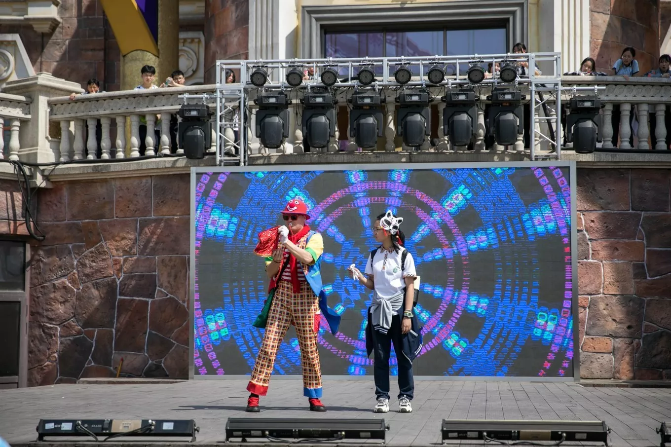 水晶城堡下的舞臺(tái)有著精彩紛呈的演出,魔術(shù),雜技,情景劇等等,游客們興致勃勃地觀看,時(shí)不時(shí)還有互動(dòng)的小游戲。大家可以根據(jù)具體園區(qū)公布的演出時(shí)間,前來(lái)這里看演出。