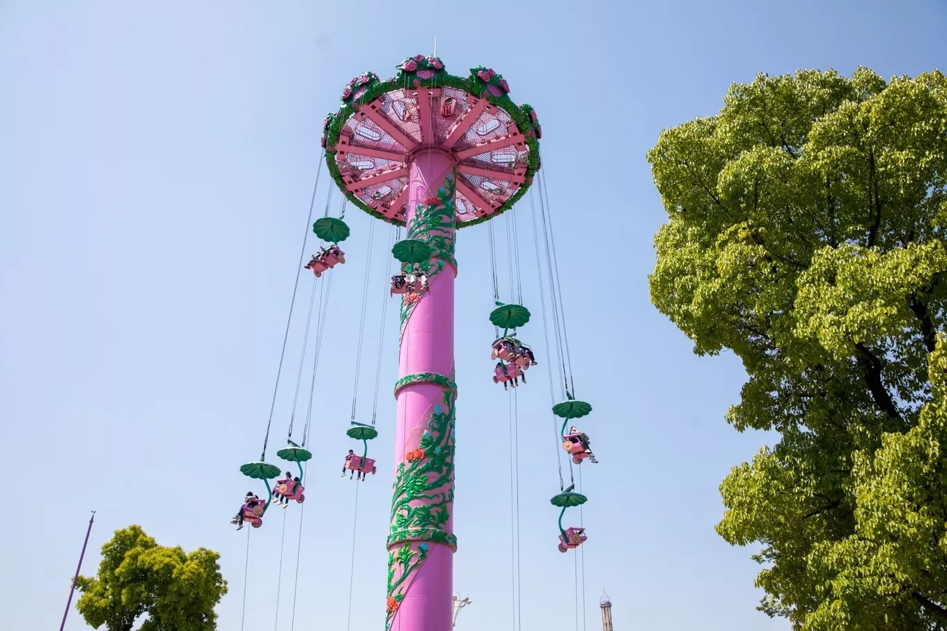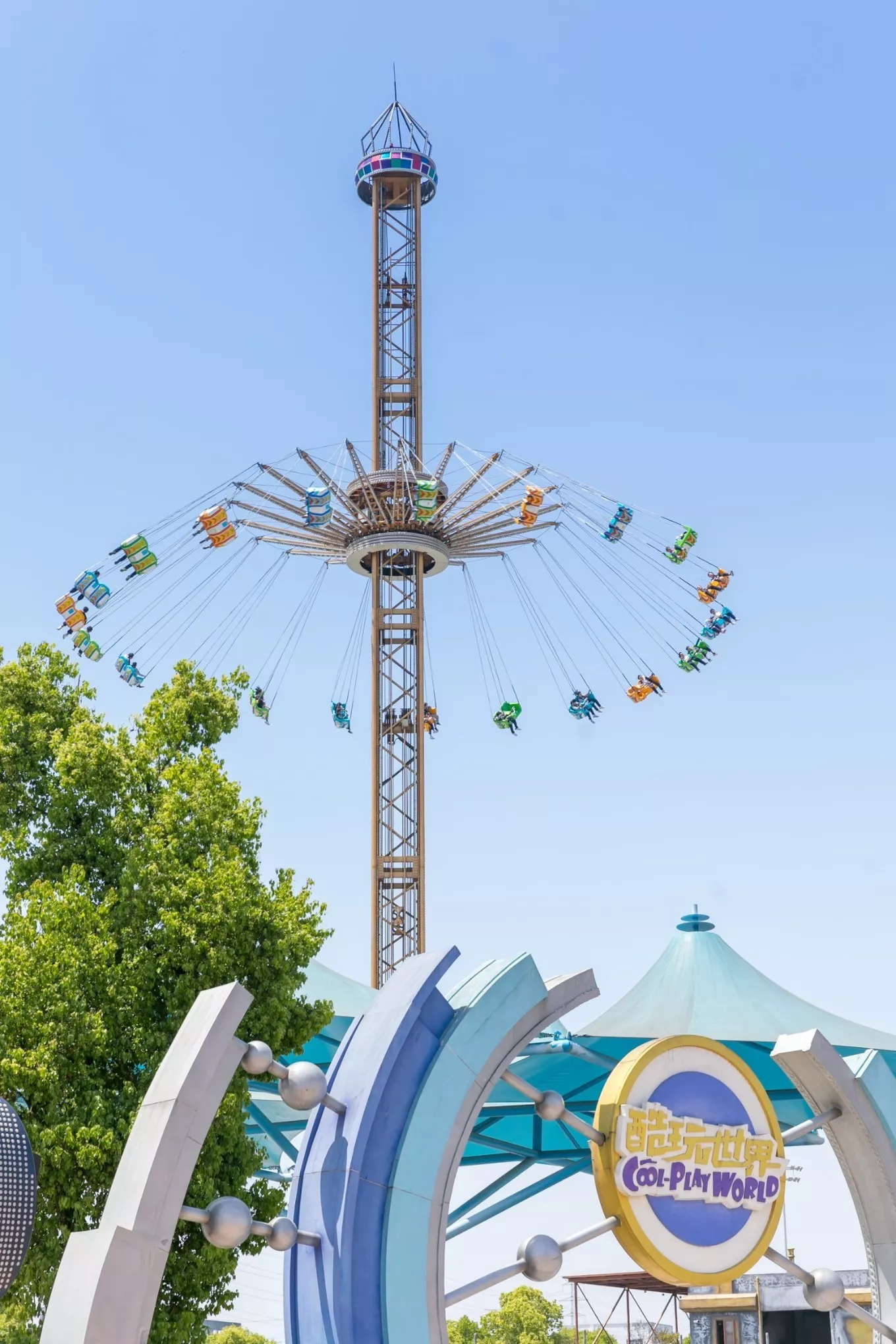 高空飛塔既刺激又適合觀光,隨著圓盤轉(zhuǎn)動(dòng)到最高處,我整個(gè)人都感覺在風(fēng)中飄。上面能看到整個(gè)樂園的風(fēng)景,如果不恐高,真的是個(gè)可以二刷的項(xiàng)目。