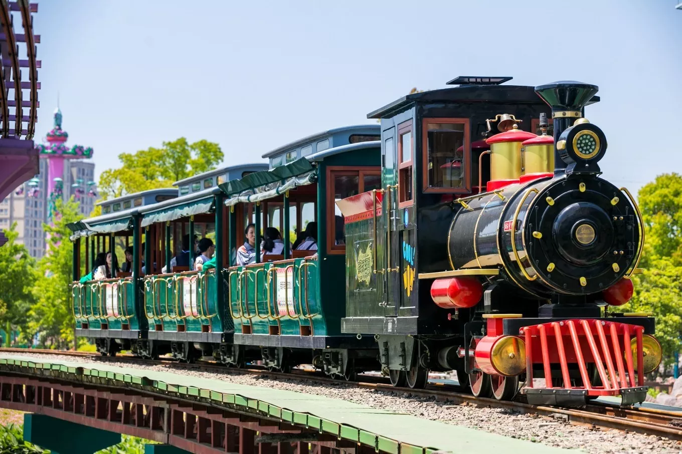 樂園里的酷玩列車,跟著這輛復(fù)古的小列車?yán)@整個(gè)樂園一圈,分清楚各個(gè)項(xiàng)目的所在,才好更加高效的游覽呀。