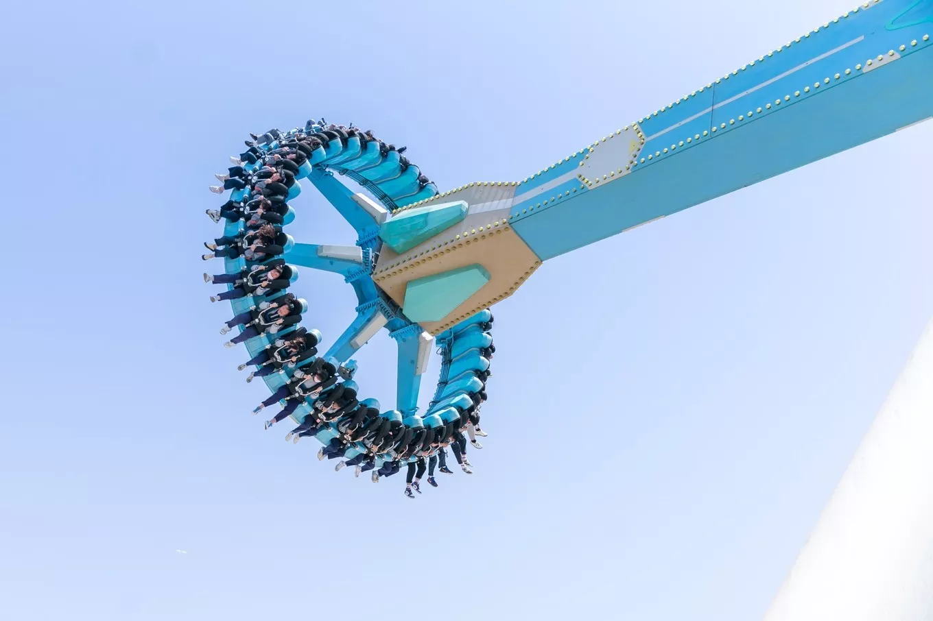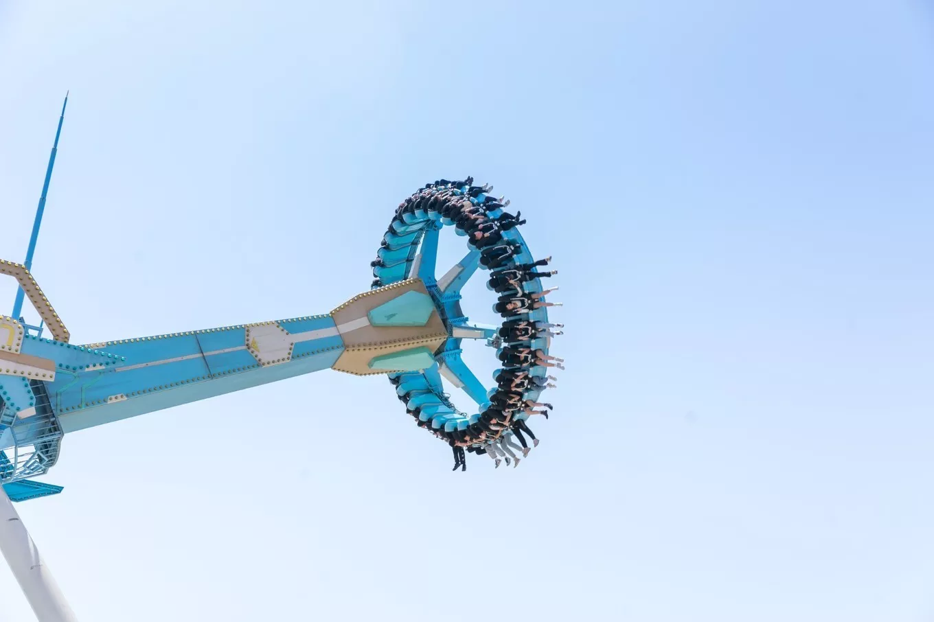 另一個(gè)令人腎上腺素飆升的項(xiàng)目是超級(jí)擺錘,其擺臂帶動(dòng)座艙往復(fù)擺動(dòng),隨著擺動(dòng)次的增加,整個(gè)座艙被越擺越高,然后是 360°旋轉(zhuǎn)。在一次次的擺動(dòng)過程中,時(shí)而感覺沖上云霄,時(shí)而感覺被甩入谷底,仿佛置身于茫茫宇宙,天旋地轉(zhuǎn),超級(jí)刺激。