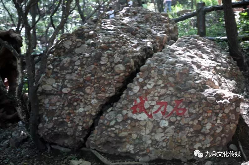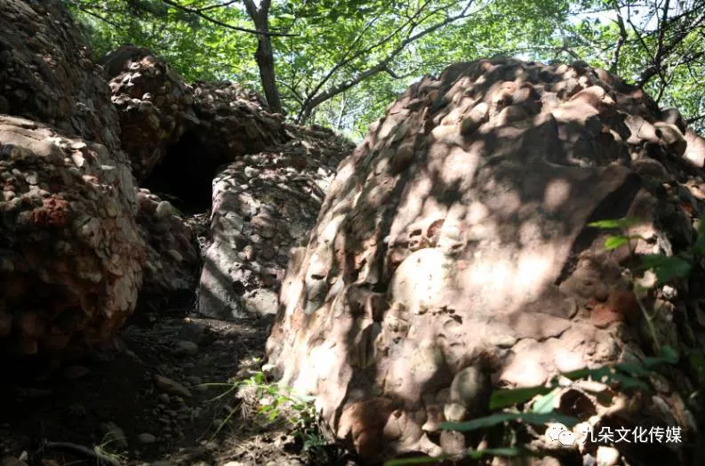 礫巖滾石(大石房)屬巨型礫巖滾石,頂部為平整的層面,兩側(cè)為節(jié)理面,之下由兩塊高約1.5米的礫巖支撐,形成了一洞,能容納3人。