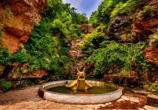 風(fēng)景名勝區(qū)的風(fēng)景依山傍水。由于夏季降水充沛,進(jìn)入大門后您會聽到微弱的水聲。水的聲音伴隨著涼爽和清新的舒適感。微風(fēng)拂面,使人們從一個炎熱的世界眨眼間走進(jìn)了一個涼爽的地方。
