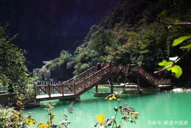 古人講,山之韻在水。山西平順虹梯關(guān)通天峽因?yàn)橛辛怂?,從而具有了更多的嫵媚和嬌艷。北方水的大多樸素?zé)o姿,然而通天峽的水,讓人驚嘆,震撼!通天湖匯集了來(lái)自峽谷里的天然泉水,占地約2萬(wàn)平方米,最深處達(dá)13米,湖水清涼純凈,含有多種有益于人體的礦物質(zhì),在不同的日光下,呈現(xiàn)出變幻莫測(cè)的色彩,如玉如碧,如夢(mèng)如幻,如一塊藍(lán)天落入山間。環(huán)繞湖水的青山劍一般直插云天,抬頭仰望有泰山壓頂之感,青山巍峨,碧水如帶,恰如舒展臂膀的漢子呵護(hù)沉睡的嬌娘。橫跨湖面是兩座木制小橋,真可謂小橋湖水,別有景致,不知是人在畫中游,還是畫在腳下流。直叫人陶醉其間,樂(lè)而忘返。