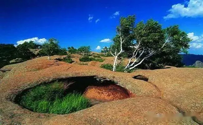 位于克什克騰地質(zhì)公園東部,包括關(guān)東車(chē)景區(qū)和青山景區(qū),面積37.13公里。形成于1億多年前的花崗巖在風(fēng)蝕、重力等外力的長(zhǎng)期作用下形成了關(guān)東車(chē)景區(qū)內(nèi)形態(tài)各異的峰林地貌。在青山景區(qū)面積約1000米平緩起伏的花崗巖石面上,分布著200多個(gè)呈橢圓形、圓形或不規(guī)則半圓形的巖臼,被稱(chēng)作"九缸十八鍋",全面展現(xiàn)了巖臼的不同發(fā)育階段,是截止2011年為止世界上規(guī)模最大、保存最好、類(lèi)型最全的巖臼群。