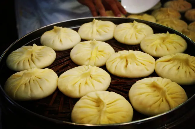 說到“文樓”,不得不提及淮揚的明點“蟹黃灌湯包”,那可算得上淮揚一絕?!拔臉恰钡臏繛闇谱鞫桑敲逼鋵嵉臏?。它包大皮薄,可以在不借著燈光而看透整個湯包,十分鮮美?,F(xiàn)今“文樓”的湯包制作師傅,也是祖?zhèn)鞯慕^技,一般加工湯包的工藝還對外保密著。