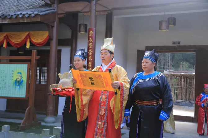 在這里還有一個(gè)可以體驗(yàn)一下古代中壯元,雖是山村,此處在明清時(shí)卻出過(guò)9進(jìn)士23舉人。剛進(jìn)村,進(jìn)士府便為大家獻(xiàn)上寒窗苦讀、到魁星點(diǎn)斗、再到三試登甲、終獲圣旨賜婚的過(guò)程。