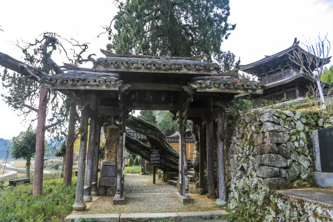 時(shí)思寺的入口是一顆祠門古柏,該樹的樹齡也高達(dá)1500年,是全國(guó)最大最古老的刺柏。順著小徑往右邊行是梅氏宗祠,梅氏宗祠建于明朝正德年間,是舊時(shí)梅氏家族舉行祭祀活動(dòng)和商議族內(nèi)大事的場(chǎng)所,主要有祠門,廂房,序倫堂祭壇和報(bào)本堂五部分組成,有兩座大門,一堂比一堂高也寬,結(jié)構(gòu)精巧,氣質(zhì)恢弘。