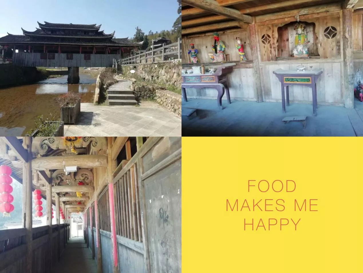 我順著曲曲折折的道路向前行,便到了胡橋。說(shuō)是一座橋到不如說(shuō)胡橋是一座老屋,全木結(jié)構(gòu)的胡橋仿佛是一個(gè)年邁的老人拖著羸弱的身體還立在哪里。老舊的木地板,因年代久遠(yuǎn)潮濕霉變的橫梁,中間有個(gè)古戲臺(tái),是以前表演木偶戲的場(chǎng)地。橫梁之上,架著一些以前表演的用具,底下落漆的紅色木椅整整齊齊的擺放著,走進(jìn)胡橋,無(wú)一不透著當(dāng)年剛改革開放時(shí)代的氣息。這座橋明朝時(shí)期便在這里,是一座典型的多功能廊橋,它的出現(xiàn)給人們帶來(lái)了多少便利。