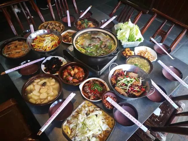 咂酒、煙熏牛肉、老臘肉、酸酢肉、臘排、烤全羊、土流水豆腐干、都巴、陰米茶、斑鳩葉豆腐、綠豆面、石柱土家野生菌宴