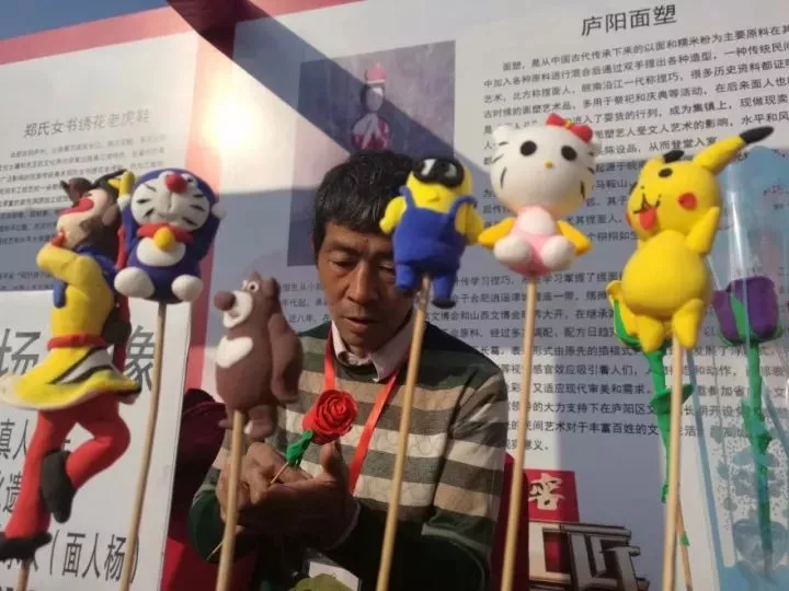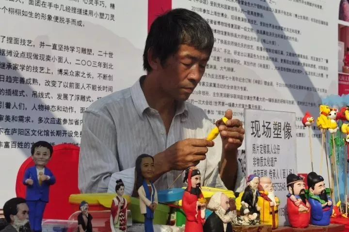 楊俊生是廬陽面塑的第四代傳人。他十三歲開始學(xué)習(xí)面塑,在先輩們傳統(tǒng)面塑技法的基礎(chǔ)上,加以創(chuàng)新,逐漸形成了自己的特色。