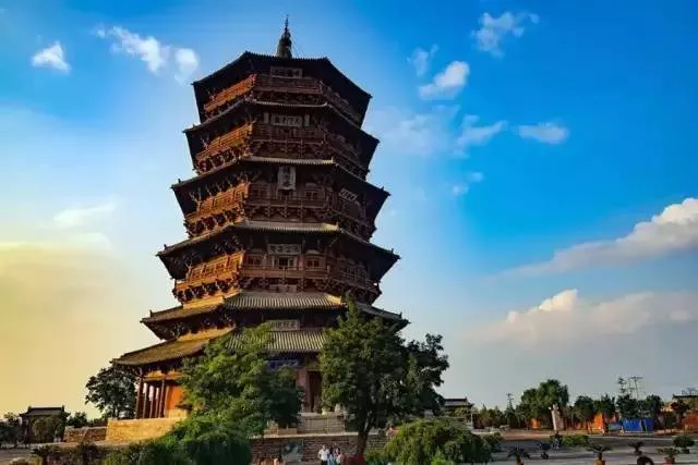 應縣木塔(又名釋迦塔全稱佛宮寺釋迦塔),位于山西省朔州市應縣城西北佛宮寺內(nèi)。建于遼清寧二年(宋至和三年公元1056年),金明昌六年(南宋慶元一年公元1195年)增修完畢,是中國現(xiàn)存最高最古的一座木構(gòu)塔式建筑。