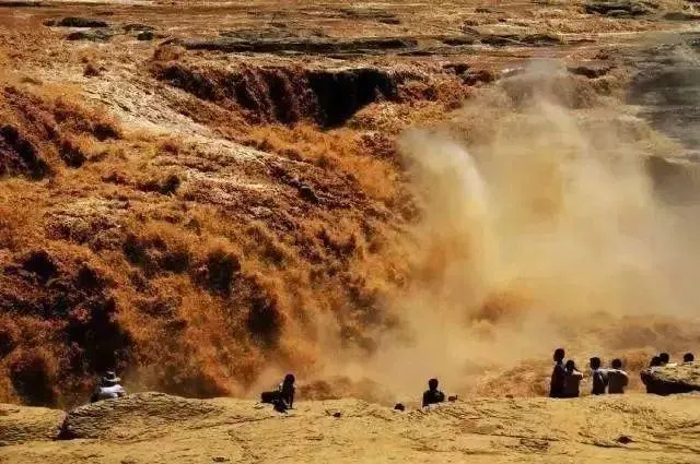 黃河至此,兩岸石壁峭立,河口收束狹如壺口,故名壺口瀑布。瀑布上游黃河水面寬300米,在不到500米長距離內(nèi),被壓縮到20-30米的寬度。飛流直下,猛跌深槽,主瀑布寬40米,落差30多米,瀑布濤聲轟鳴,形成”千里黃河一壺收”的氣概,令人莫不想起“風在吼,馬在叫,黃河在咆哮”這威武雄壯的歌聲。是中國第二大瀑布,世界上最大的黃色瀑布。