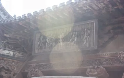一位村民告訴我,解放后,該祠堂曾經(jīng)是一個(gè)學(xué)校,現(xiàn)在門(mén)楣上放的字是當(dāng)時(shí)一名教師制作的。我想,他肯定是一名物理教師,利用光線(xiàn)折射的原理,才創(chuàng)造出這么巧妙的作品。