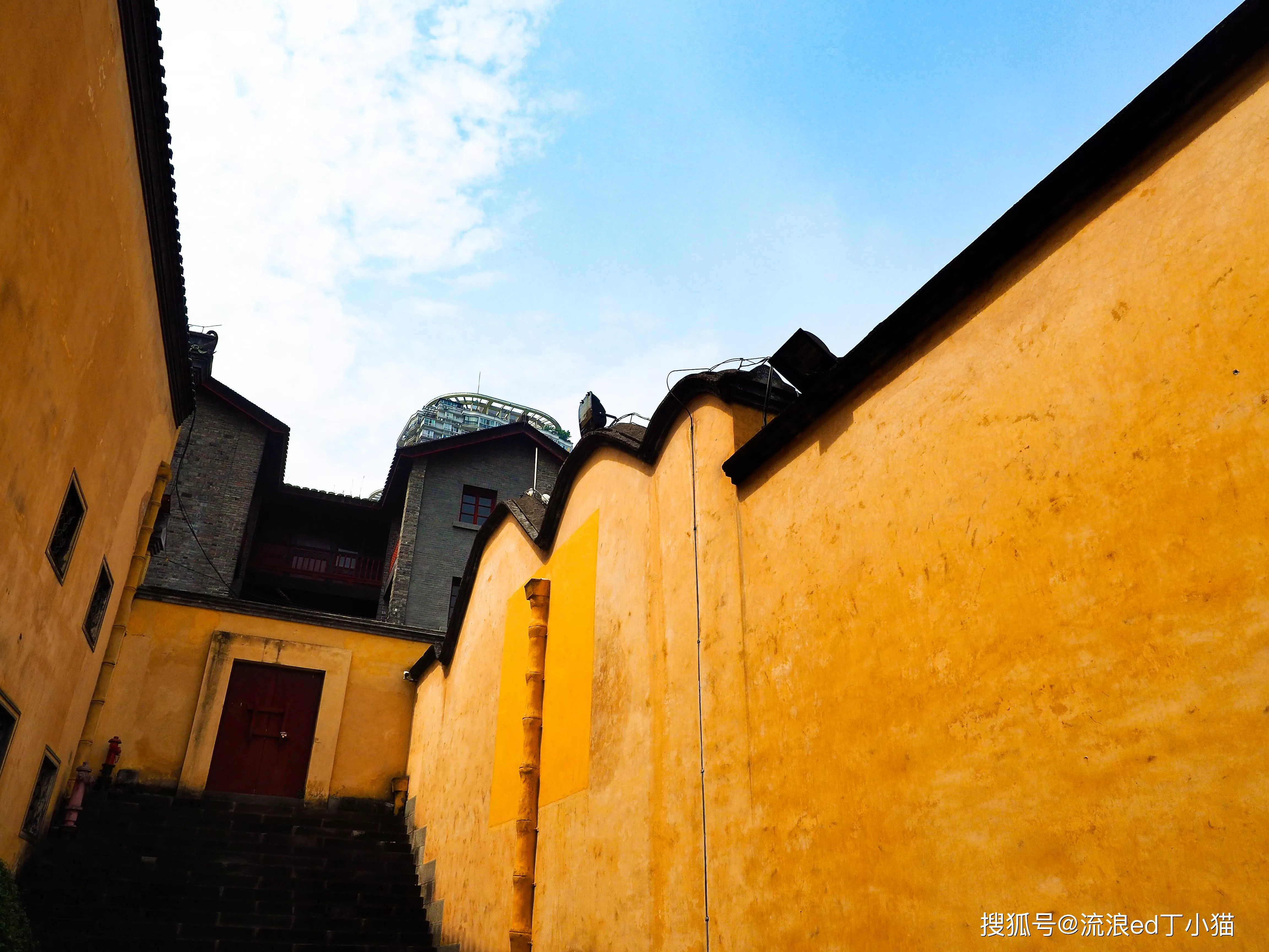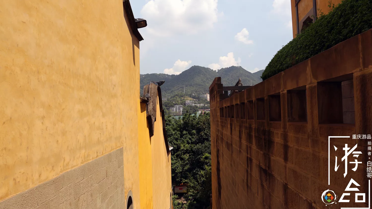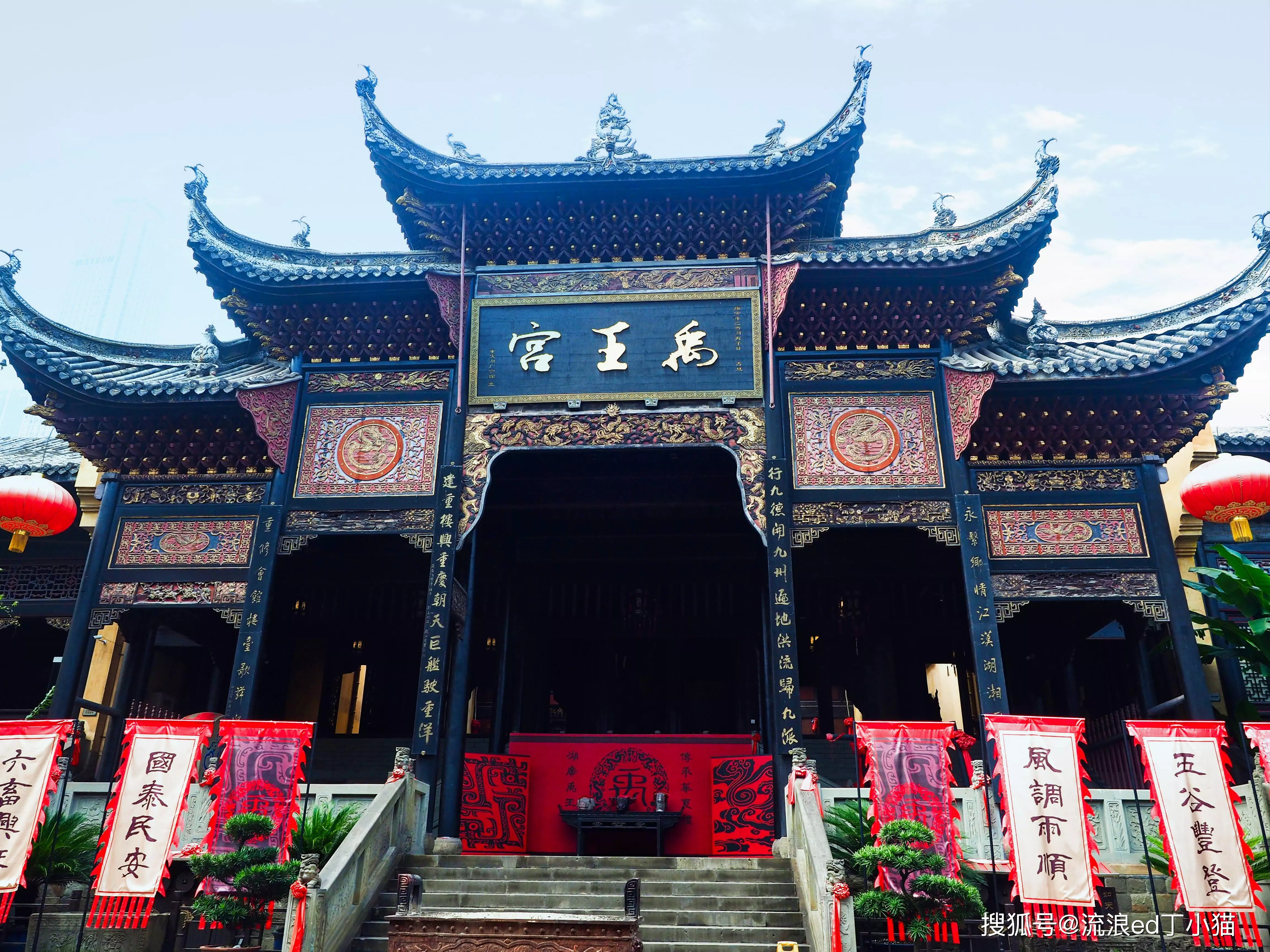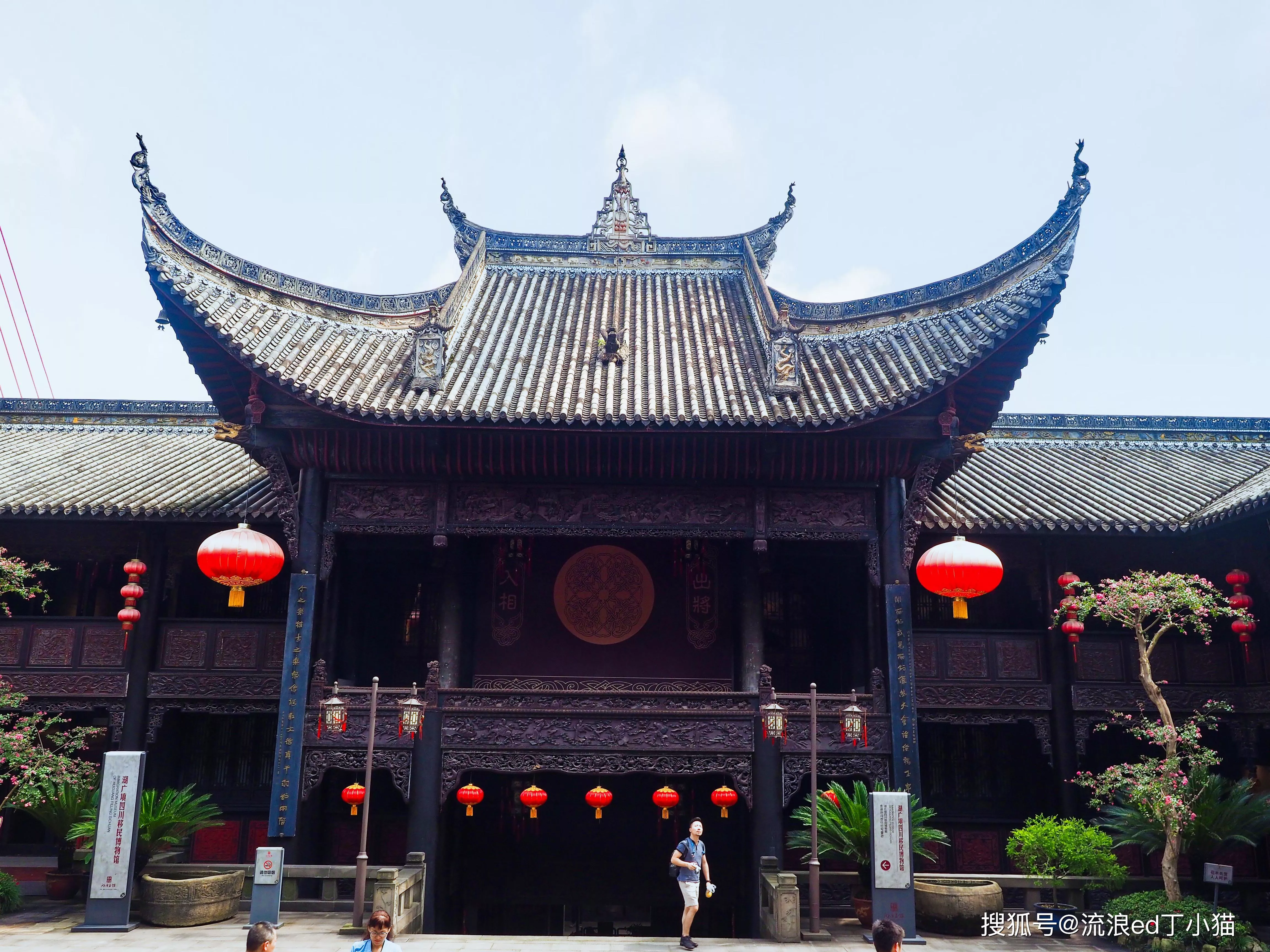從來福士廣場一路沿著東水門老街走來,穿過長江索道下面的馬路就來到了湖廣會館的側(cè)門,在沿著售票處向右走一分鐘,就來到了重慶湖廣會館的正門。雕梁畫棟的門頭,在兩只大紅燈籠的裝飾下,尤為吸睛,再綠蔭的蔭蔽下,更是鮮明而靚麗。 讓人忍不住想,停下來與之合影留念。