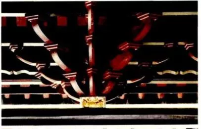 湖廣會館的屋頂也具有濃郁的地域特色,屋面幾乎不用舉架的變化坡度,而用古樸的四分水直線起坡,構(gòu)筑方式極為簡練,歇山式的戲樓屋頂直線起坡可達(dá)40°左右,風(fēng)格古樸而造型剛勁有力,翼角起翹采用嫩發(fā)又顯得靈活輕盈。
