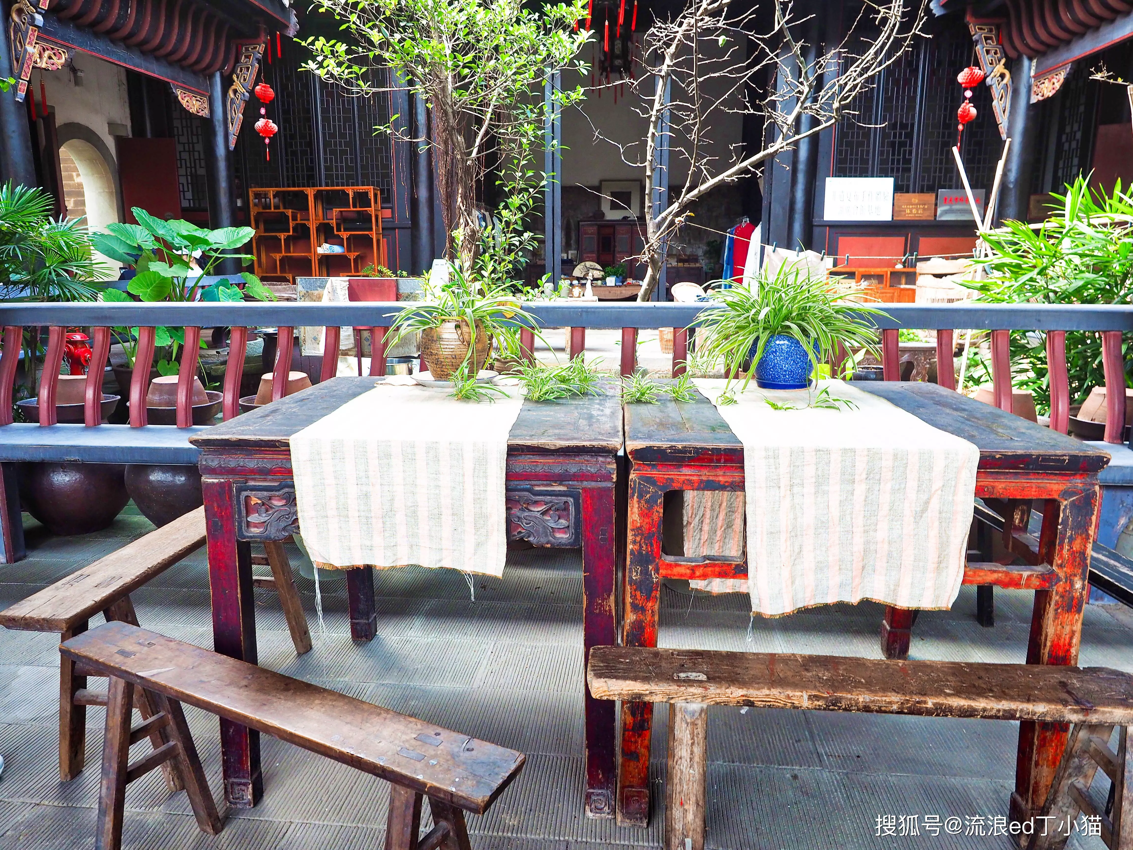 若覺得無聊,可以慢慢地去觀賞這里的幾張古床,張張都是價值不菲。上面景美的雕刻工藝,代表著一個年代的文化結(jié)晶。亦可到民族風(fēng)的店鋪里,選上一身行頭裝扮,在四方桌上上演一臺民國絕代佳人的風(fēng)華絕卓,拍攝一張紙復(fù)古風(fēng)情的照片。走到院墻的臺階高處,這里可以與那飛馳而過的長江索道合影。幾乎每一個進(jìn)館的人,都會選擇在此留影。