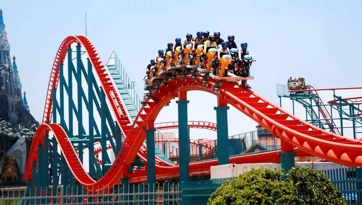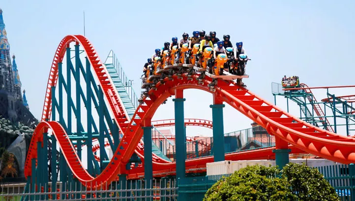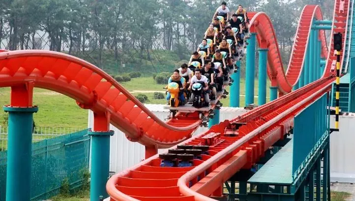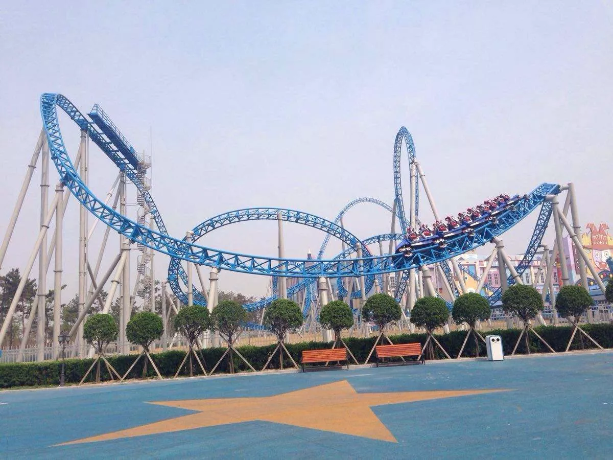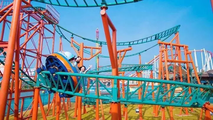 開始的時(shí)候,不知道為什么它叫做藍(lán)火之戰(zhàn),但一旦親眼見到了,就會(huì)恍然大悟。天藍(lán)色的軌道,大紅色的座椅,轉(zhuǎn)彎、翻滾,像極了燃燒的火焰。游客們瘋狂的尖叫著,熱情點(diǎn)燃了軌道。這可是亞洲唯一的藍(lán)火過山車。