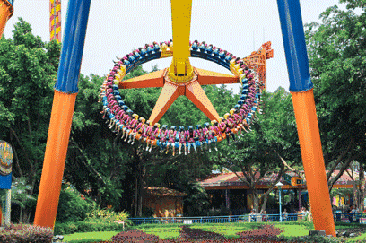 歐樂堡的門口有一座類似城堡樣的建筑,頗為高大,上面寫著“歐樂堡”三個(gè)大字,顯得文雅、風(fēng)趣。進(jìn)入后必玩亞洲唯一的藍(lán)火過山車“藍(lán)火之戰(zhàn)”,360度的轉(zhuǎn)圈,身體忽高忽低,遠(yuǎn)望上面的人就像在扭麻花,使人不禁倒吸一口涼氣。怪不得這刺激的游戲只有膽大的才敢去挑戰(zhàn)。