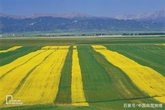 門(mén)源油菜花氣勢(shì)壯觀,北依祁連山,西起永安城,東到玉隆灘,南鄰大坂山,綿延上百公里,宛如金黃的大海。