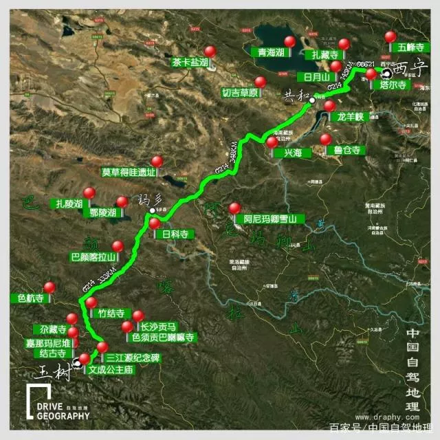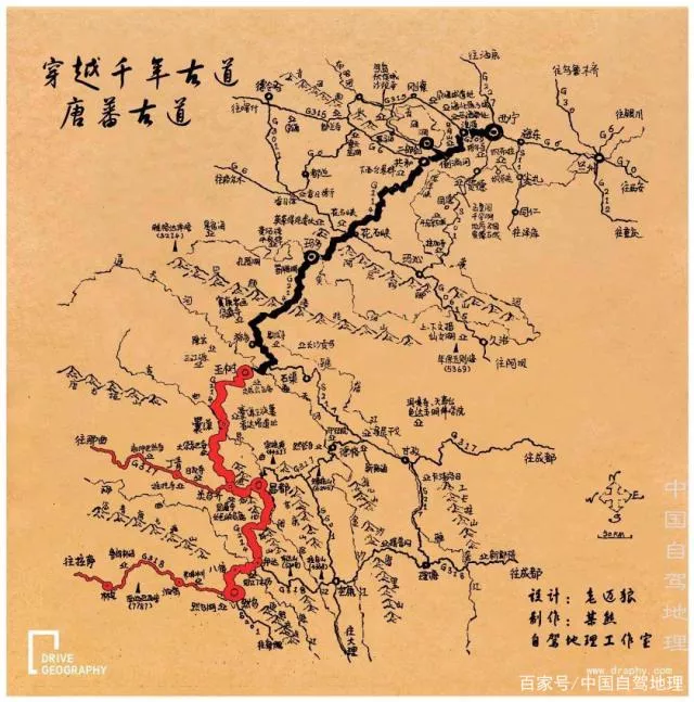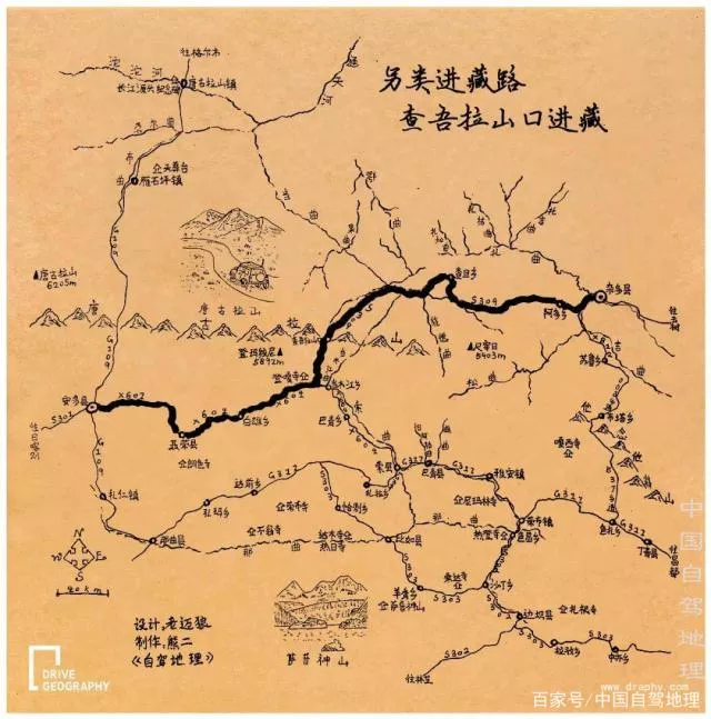 唐蕃古道自駕路線手繪地圖,制作@中國(guó)自駕地理
