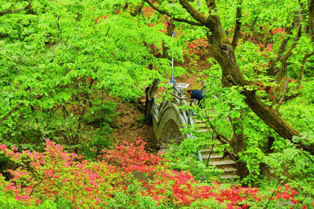 這里,是杜鵑花海洋。漫山遍野的杜鵑花,像晨霧里的火光,似彩云中的霞光