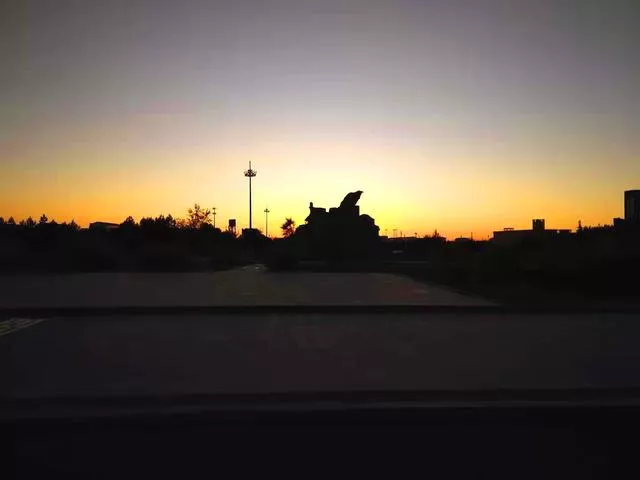 繼續(xù)向前就走到了滿都拉圖的位置了,這是蘇尼特左旗的行政中心,大街上非常寬闊,路兩側(cè)矗立著蒙古特色的雕塑,高大壯觀,尤其是落日下的雄鷹,感覺活靈活現(xiàn)。因?yàn)榻裉煲s往阿巴嘎旗,所以就沒有過多地在滿都拉圖停留,只是匆匆地欣賞了一下這里的街景。