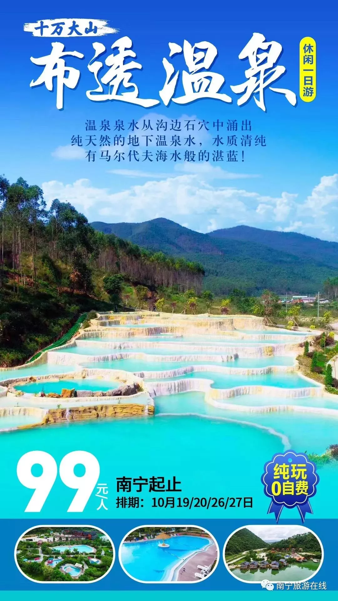 景區(qū)每周四將對溫泉疊瀑放水消毒清洗不對外開放。請合理安排時(shí)間出行,感謝您的理解。