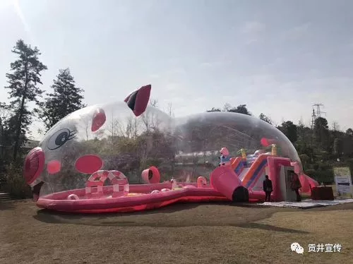 色彩斑斕的卡通充氣設備讓孩子們置身于美妙的童話世界